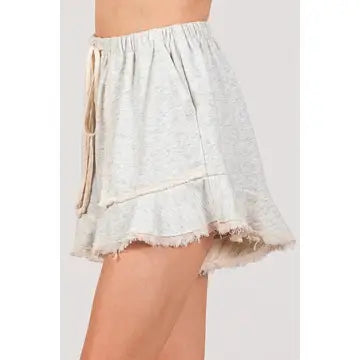 Enhance your wardrobe with our French terry raw edge shorts. These stylish shorts feature a raw edge hem and convenient patch pockets, as well as a comfortable elastic waist band. Made with 100% cotton, these shorts also have a convenient raw edge side pocket and raw edge finishing.