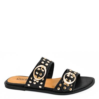 Elevate your warm-weather wardrobe with this versatile sandal, featuring refined gold accents and adjustable buckle detailing. The flat sole delivers all-day comfort without sacrificing style, making it an effortless choice for everything from casual outings to polished summer looks.